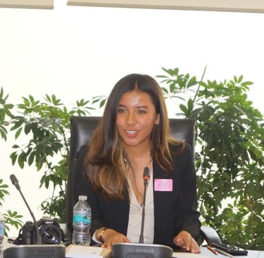 Fue delegada de México en el Festival Mundial de la Juventud y estudia Innovación y Negocios gracias a la beca "Reconocimiento al mérito" en la Universidad de la Libertad.